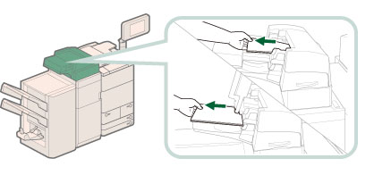 La partie de l'Unité d'insertion de Document-K1 peut gêner le module de finition lors de l'élimination de bourrages. Il convient par conséquent de lever l'unité avant de procéder à l'élimination de bourrages du module de finition.