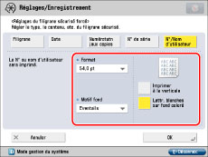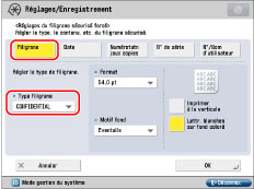 Si [Filigrane sécurisé du pilote d'imprimante] et [Filigrane sécurisé forcé] sont définis pour une imprimante en même temps, le Filigrane sécurisé forcé est prioritaire.