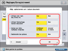 Canon ne sera pas responsable des préjudices éventuels liés à l'utilisation du mode Verrouillage lecture document ou de l'impossibilité d'utiliser ce mode.