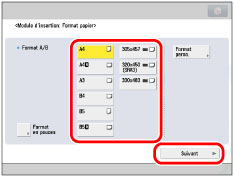 Sélectionner le même format papier que celui qui est chargé dans l'Unité d'insertion de Document-K1.
