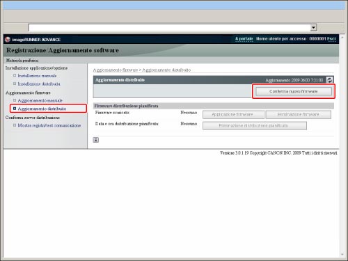Fare clic su [Aggiornamento distribuito] → [Conferma nuovo firmware].
