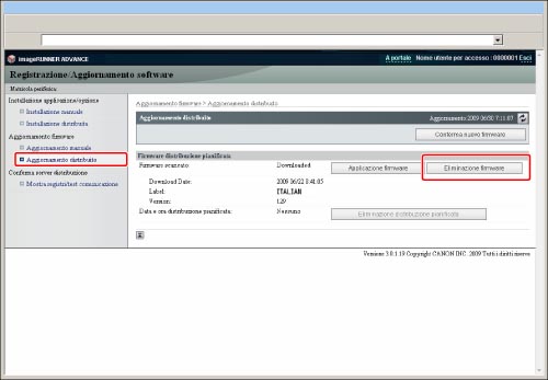 Fare clic su [Aggiornamento distribuito] → [Eliminazione firmware].
