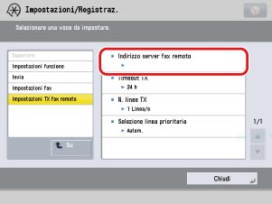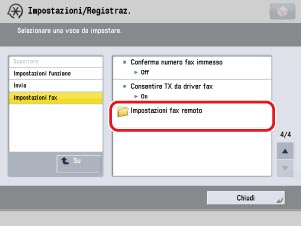 → [Impostazioni funzione] → [Invio] → [Impostazioni fax] → [Impostazioni fax remoto].