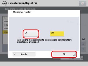 Selezionare [On] per <Utilizzo fax remoto> → premere [OK].