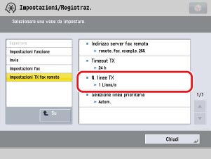 → [Impostazioni funzione] → [Invio] → [Impostazioni fax] → [Impostazioni TX fax remoto].