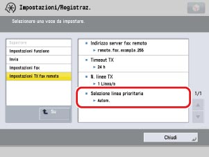 Selezionare [Autom.] o la linea da utilizzare come prioritaria → premere [OK] → [Chiudi].