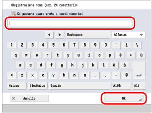 Premere [Scansione e invio] nella schermata del menu principale → [Rubrica] → [