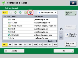 Premere [Aggiunta da rubrica] → selezionare gli indirizzi e-mail da registrare nel gruppo → premere [OK].
