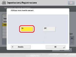 → [Impostazioni funzione] → [Invio] → [Impostazioni e-mail/I-Fax] → [Utilizzo invio tramite server].