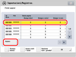 Per azzerare i conteggi di tutte le divisioni, fare clic su [Impostazioni...] nella schermata di Gestione ID divisione → fare clic su [Azzera tutti i conteggi].