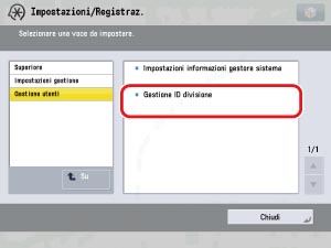 → [Impostazioni gestione] → [Gestione utenti] → [Gestione ID divisione].