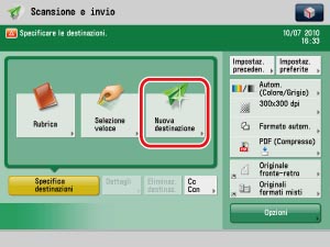 Premere [Scansione e invio] nella schermata del menu principale → [Nuova destinazione].