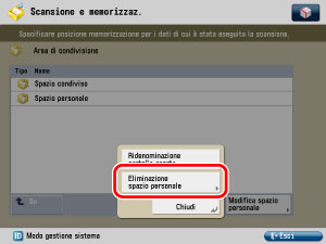 L'Area di condivisione comprende due tipi di archivio: lo spazio condiviso e lo spazio personale. I file registrati nello spazio personale possono essere protetti limitandone l'accesso.