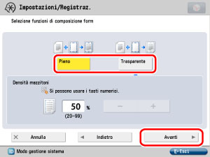 Selezionare [Pieno] o [Trasparente] → premere [Avanti].