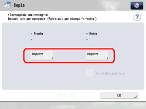 Per sovrapporre la stessa immagine sui due lati del foglio, eseguire le impostazioni per il fronte → premere [Come lato anteriore].