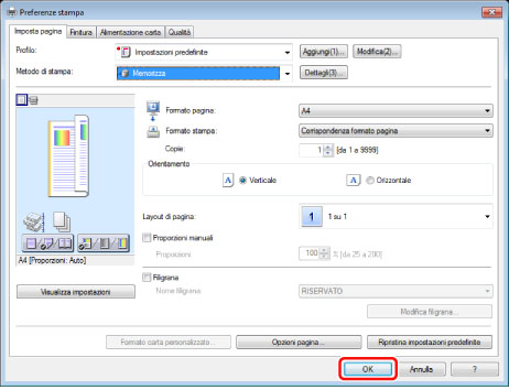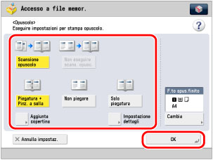 Specificare le impostazioni per la stampa opuscolo → premere [OK].