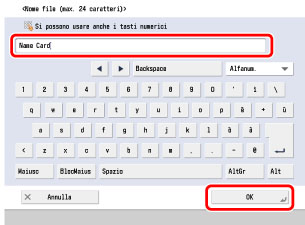 Immettere un nome per i dati scansionati → premere [OK].