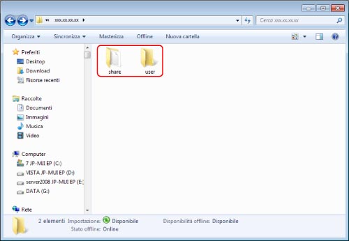 Selezionare la cartella [share] o [users] nell'Area di condivisione.