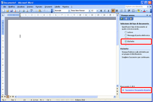 Selezionare [Cambia il layout del documento] per [Scelta del documento di partenza] → fare clic su [Opzioni etichette].