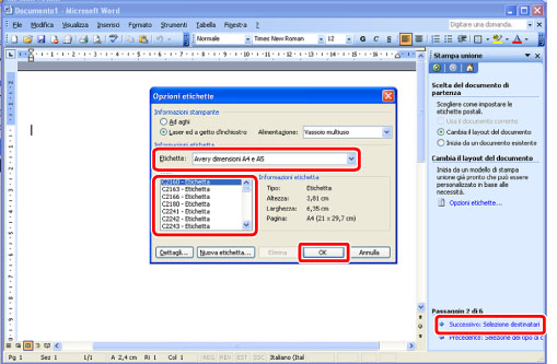 Selezionare le dimensioni delle etichette per [Etichette] → fare clic su [OK] → [Successivo].
