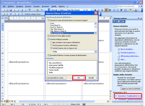 Fare clic su [Blocco di indirizzi] in [Disponi etichette].