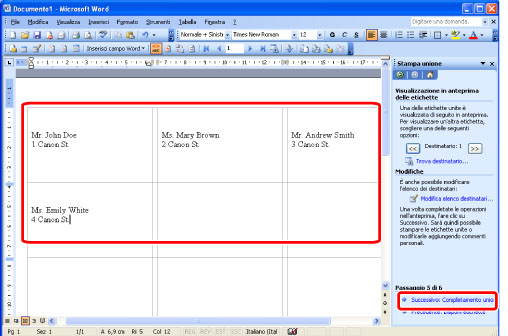 Le etichette di indirizzi vengono stampate.