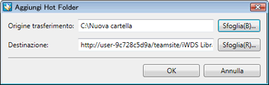 Tenere presente che le sottocartelle di una hot folder non vengono monitorate e la copia di una cartella nella hot folder non attiva il trasferimento.