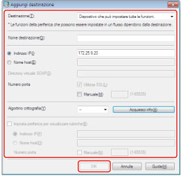 Viene visualizzata la finestra di dialogo [Aggiungi destinazione].