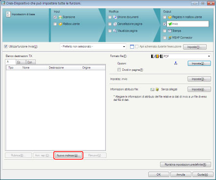 Dal menu [Destinazione] menu, selezionare [Aggiungi destinazione]. È possibile eseguire questa operazione anche facendo clic su [