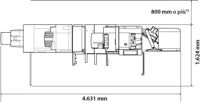 *1 Assicurarsi di lasciare almeno 800 mm di spazio se si installa uno o più dei seguenti: Booklet Trimmer-D1, Paper Folding Unit-H1, Professional Puncher-C1 o Document Insertion Unit-K1.