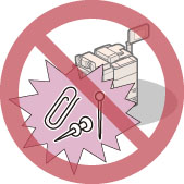 Fare attenzione a non versare liquidi e a non fare cadere oggetti estranei nella macchina, ad esempio fermagli o punti in metallo. Se una parte estranea entra in contatto di un componente elettrico all'interno della macchina, può causare cortocircuiti, che provocano incendi o scosse elettriche.