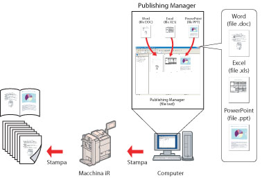 Con Publishing Manager, è possibile creare documenti in modo efficiente sfruttando al massimo le funzionalità di una macchina Canon.