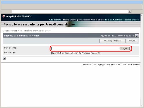 Per utilizzare un'altra macchina della serie imageRUNNER ADVANCE, esportare le informazioni relative all'utente quando si esegue il backup dei dati dell'Area di condivisione. Se si importano le informazioni relative all'utente nell'altra macchina, è possibile utilizzare i dati memorizzati nell'Area di condivisione. Per informazioni sul backup/ripristino dei dati memorizzati, vedere "Backup dei dati memorizzati".