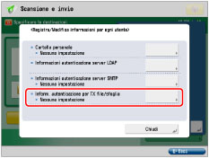 Utilizza le informazioni di autenticazione del server di file impostate nella macchina. (Vedere "Registrazione di un indirizzo di file server".) Non sono richieste ulteriori impostazioni per ciascun utente.