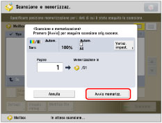 È possibile acquisire e memorizzare fino a 999 pagine contemporaneamente. Se gli originali fronte-retro vengono acquisiti con l'alimentatore, è possibile memorizzare fino a 1.000 pagine. Quando viene raggiunto il numero massimo di originali acquisibili, viene visualizzato un messaggio che chiede se memorizzarli.