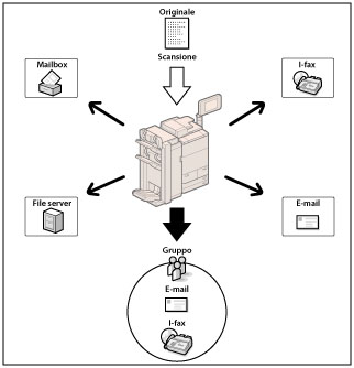 Per poter inviare i documenti acquisiti ad un indirizzo e-mail, ad un indirizzo I-fax oppure ad un file server, si devono configurare le impostazioni della rete. (Vedere "Impostazioni di comunicazione comuni per e-mail/I-Fax".)