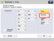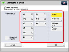 È possibile specificare manualmente un formato di scansione quando si acquisiscono originali che non possono essere rilevati con [Formato autom.]. Inoltre, è possibile memorizzare il formato di scansione specificato.