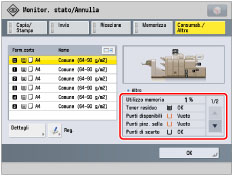 La tabella seguente indica la quantità residua dei materiali di consumo.
