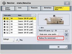 Nella tabella riportata sotto è indicato lo stato del backup.
