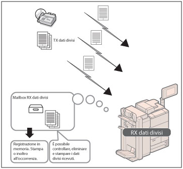 È possibile controllare lo stato dei dati divisi e lo spazio disponibile nella Mailbox RX dati divisi.