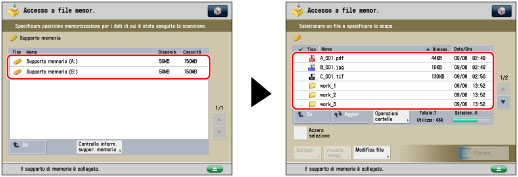 Se nel supporto memoria sono registrati due file o più, è possibile premere [Nome] o [Data/Ora] per ordinare l'elenco dei file.