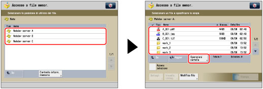 Selezionare la posizione di memorizzazione desiderata → selezionare il livello della cartella desiderata → premere [Operazioni cartella].