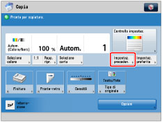 Le impostazioni di copiatura vengono calcolate come impostazioni di un'ultima copia fino ai casi seguenti: se non sono impostate come impostazione singola, le impostazioni non potranno essere richiamate con [Impostaz. preceden.].