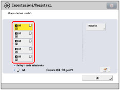 Se come formato carta è visualizzato [Person.] mentre è stata caricata carta di formato standard, premere [Formato personaliz.] → [Annulla impostaz.]. Il formato carta corretto sarà rilevato automaticamente e visualizzato sullo schermo.