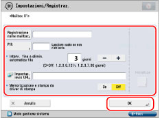 Per immettere il numero della mailbox con - (tasti numerici), digitare un numero di due cifre → selezionare [OK].