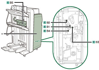 1. Ruotare la manopola (F-B4) per alimentare la carta inceppata verso la fessura di consegna. |