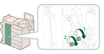 2. Ruotare la manopola (F-B3) per alimentare la carta inceppata verso la fessura di consegna. |