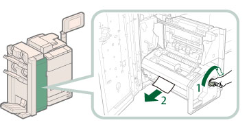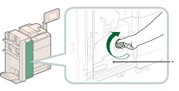 Se il Booklet Trimmer-D1 è installato, ruotando la manopola si alimenta la carta inceppata al nastro di alimentazione del rifilatore opuscoli.