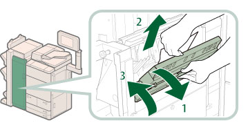 2. Estrarre eventuali fogli inceppati nell'area di consegna dell'unità di pinzatura a sella.