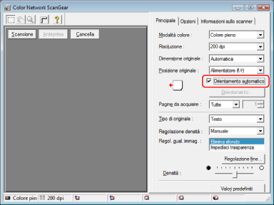 Durante la scansione, l'orientamento dell'originale viene rilevato automaticamente e l'immagine acquisita viene ruotata, se necessario, in modo che sia visualizzata correttamente sullo schermo del computer.